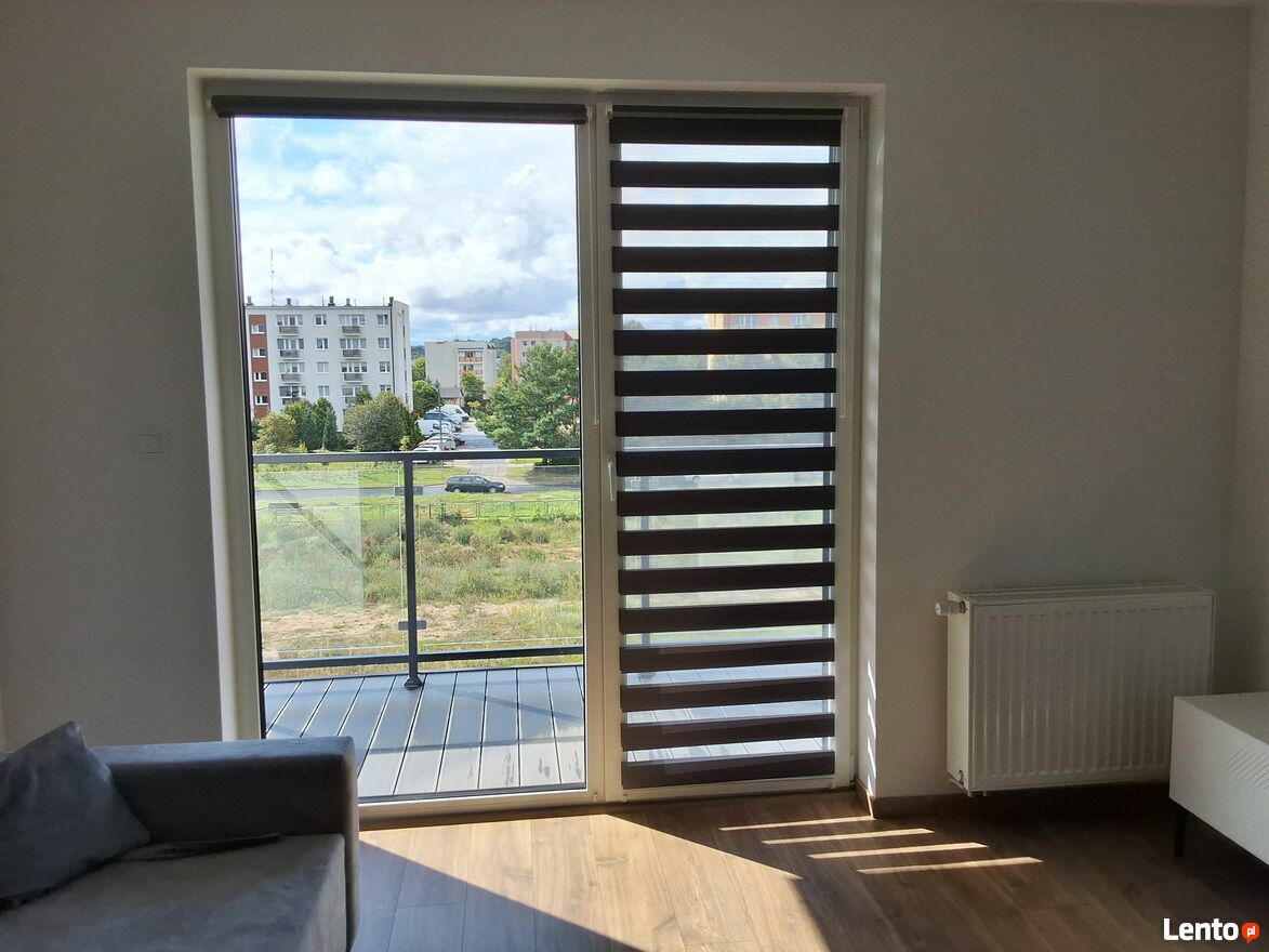 Wynajmę nowe, umeblowane mieszkanie zlokalizowane w atrakcyjnej, spokojnej okolicy Koronowa. Mieszkanie znajduje się na ulicy Sportowej w bloku z windą, na 3 piętrze. Składa się z pokoju dziennego z aneksem kuchennym, sypialni, łazienki oraz tarasu.Mieszkanie o wysokim standardzie ma powierzchnię 43 m2 i może być przeznaczone na biuro. W sąsiedztwie drugi nowy blok, zagospodarowany teren zieleni, osiedle nowszych domów jednorodzinnych, las i zalew koronowski. Nieruchomość położona jest w odległości 50 metrów od przystanku autobusowego,niespełna 100 metrów od przedszkola i kompleksu handlowego: sklepy spożywcze,odzieżowe, budowlane. W pobliżu szkoła podstawowa,