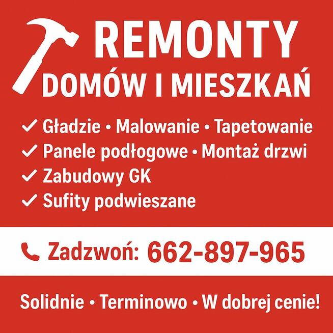 Potrzebujesz remontu? Zrobimy to za Ciebie! Gładzie, malowanie, tapetowanie Podłogi i panele Montaż drzwi ...